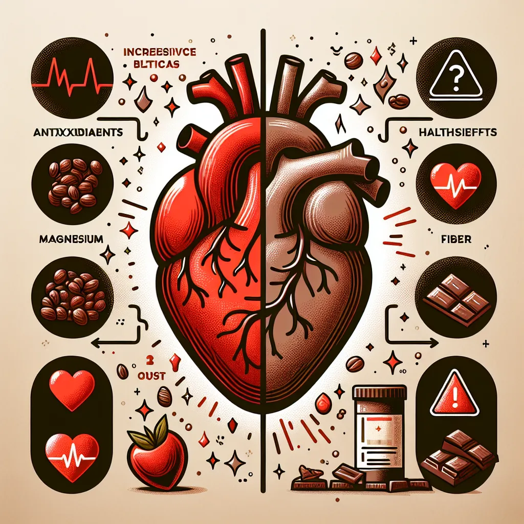 Какао содержит флавоноиды, которые могут улучшать здоровье сердца, способствуя расширению кровеносных сосудов, снижению артериального давления и улучшению кровотока. Эти соединения также обладают антиоксидантными свойствами, которые могут уменьшать воспаление и снижать риск сердечно-сосудистых заболеваний. Однако чрезмерное потребление какао, особенно в виде шоколада с высоким содержанием сахара и жиров, может привести к увеличению веса и повышению уровня холестерина, что негативно сказывается на здоровье сердца. Умеренное потребление какао, особенно в форме темного шоколада с высоким содержанием какао и низким содержанием сахара, может быть полезным для сердечно-сосудистой системы.
